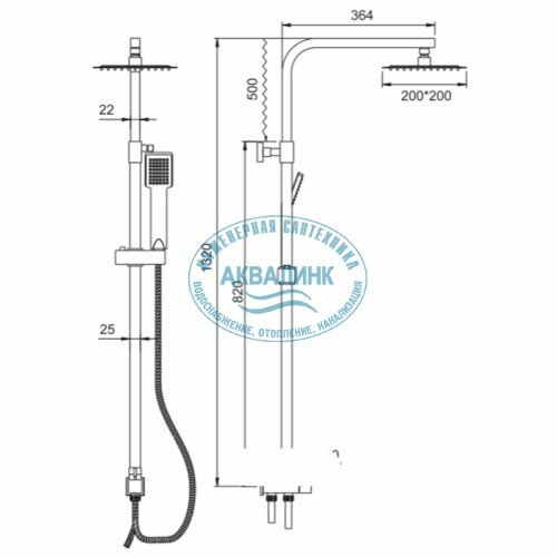 | Комплектация | душевая стойка / верхний душ / душевая лейка / душевой шланг / держатель для душевой лейки / настенный держатель |