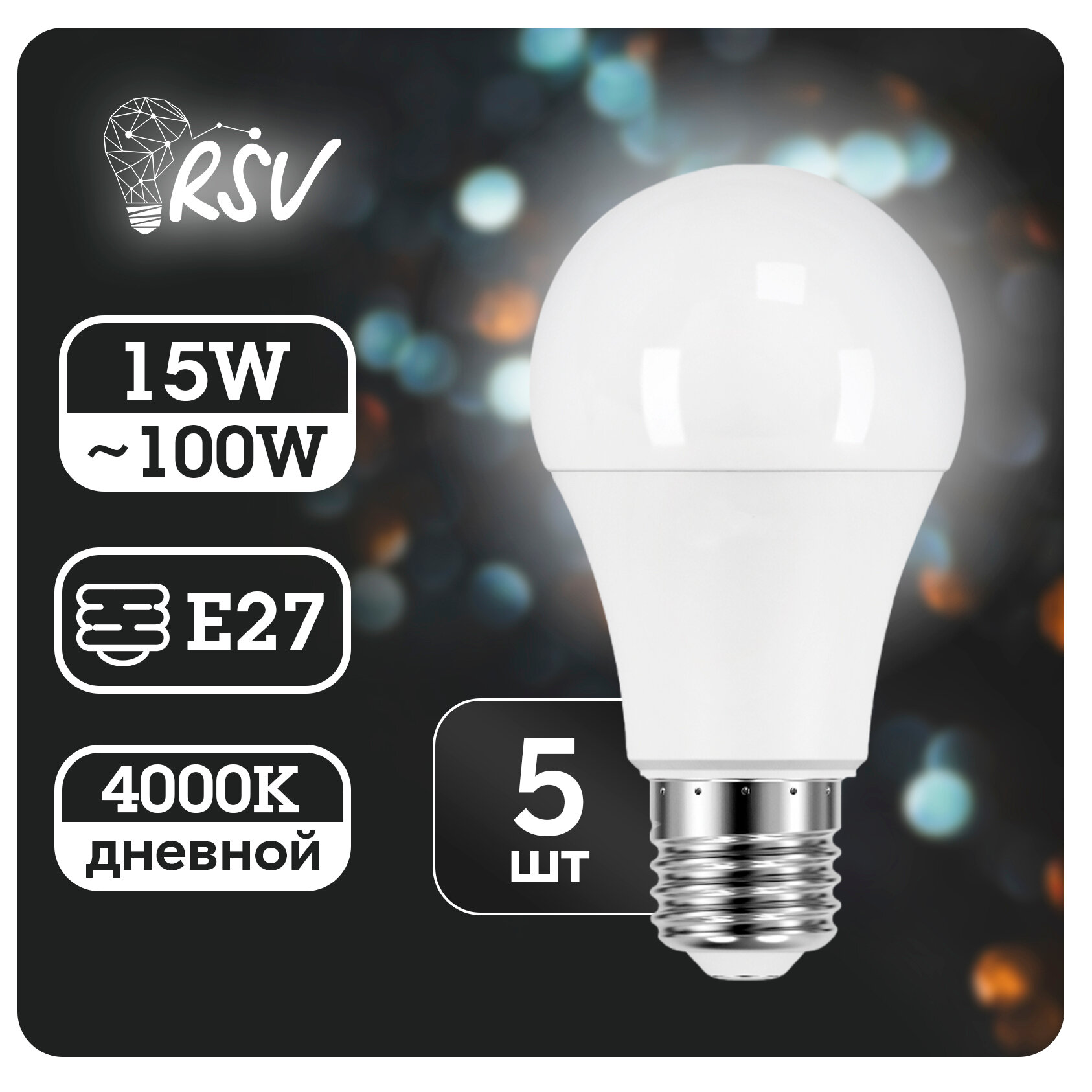 Светодиодная лампа RSV-A60-15W-4000K-E27 P, в комплекте 5 штук интересное: