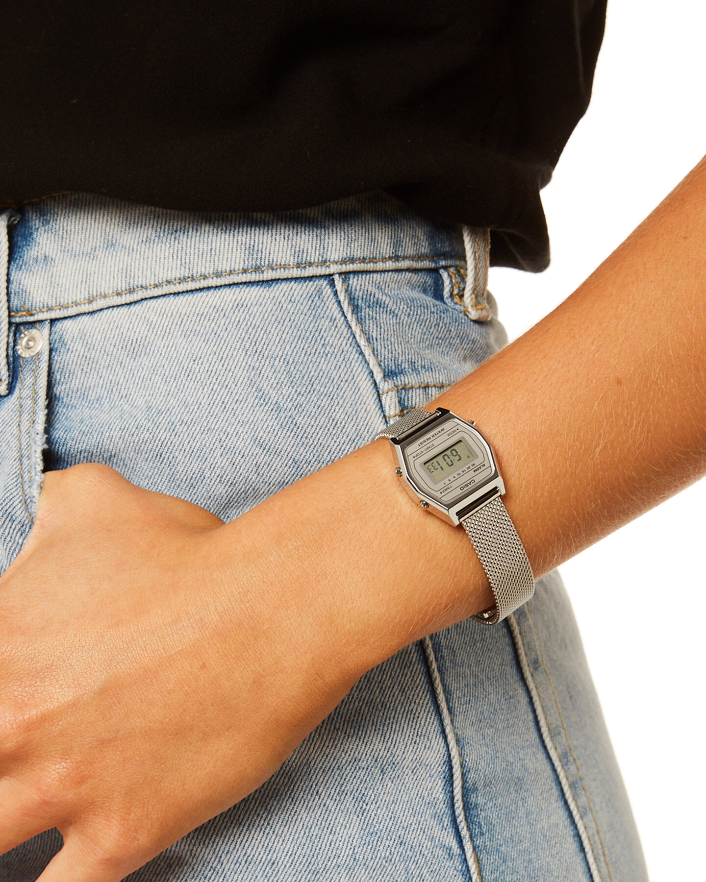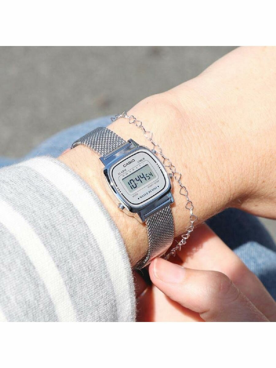 LA670WA-4D Casio наручные часы кварцевые WR30 (3 атм) женские серебряный секундомер, таймер обратного отсчета будильник отображение дня недели, отображение месяца, отображение числа акриловое стекло