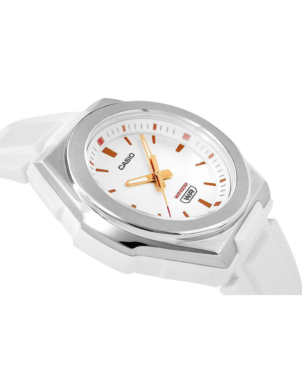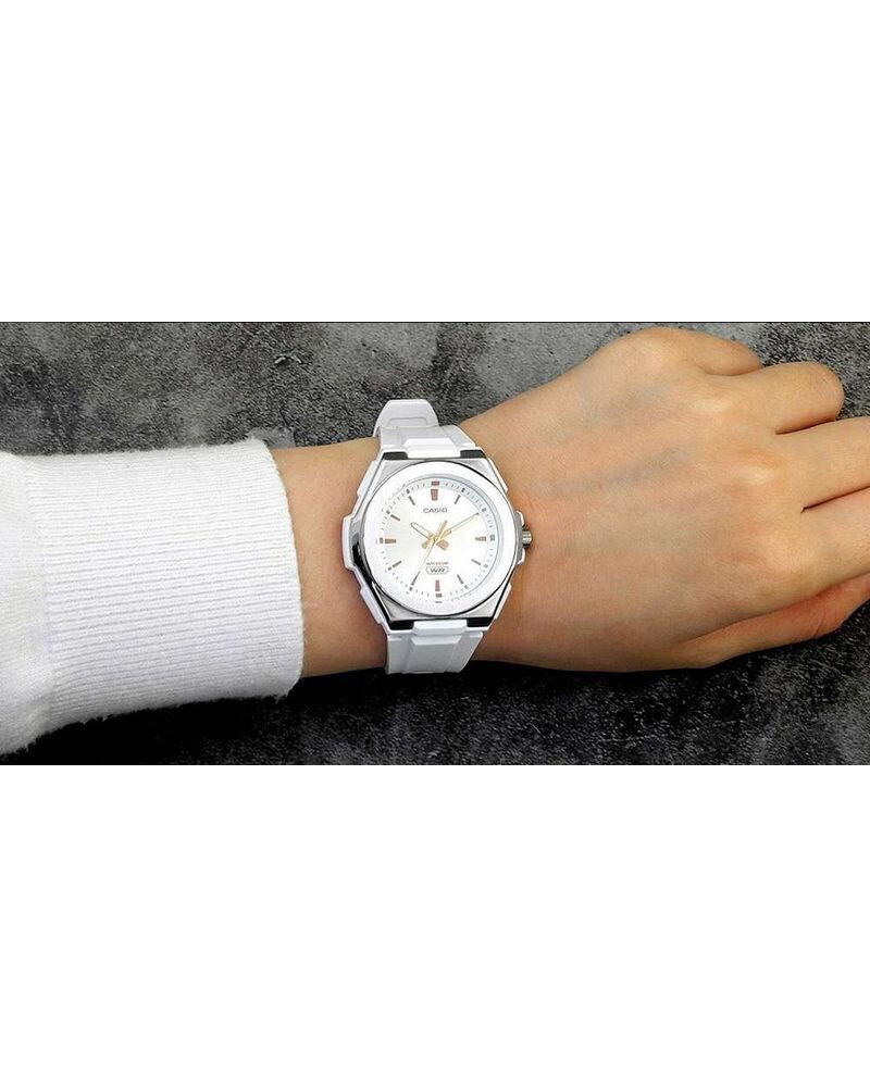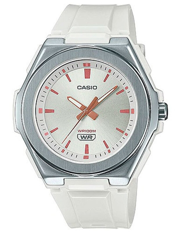 LWA-300H-7E Casio наручные часы кварцевые WR100 (10 атм) женские хром, белый будильник водонепроницаемые минеральное стекло