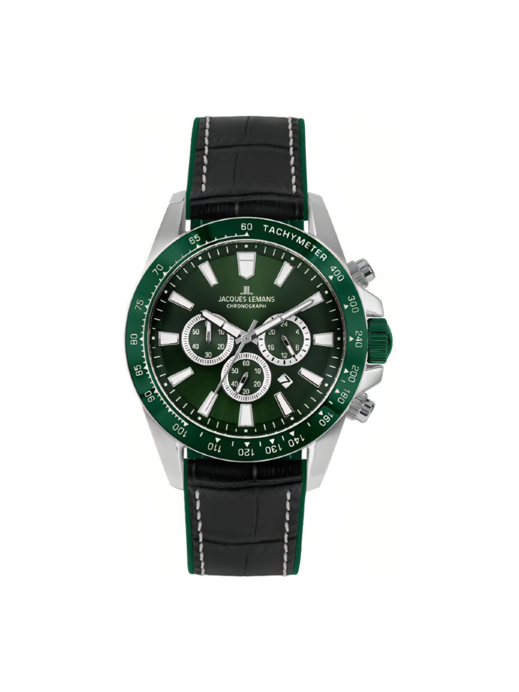 Наручные часы Jacques Lemans 1-2140C, мужские кварцевые спортивные часы Жак Леман с хронографом и датой на комбинированном ремне (силикон и кожа)