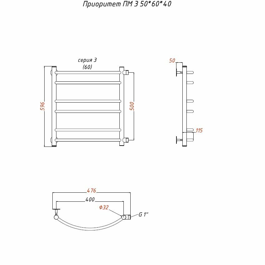 Полотенцесушитель Тругор Приоритет ПМ 3 50*60*40 (ЛЦ2) Приоритет3/ПМ506040