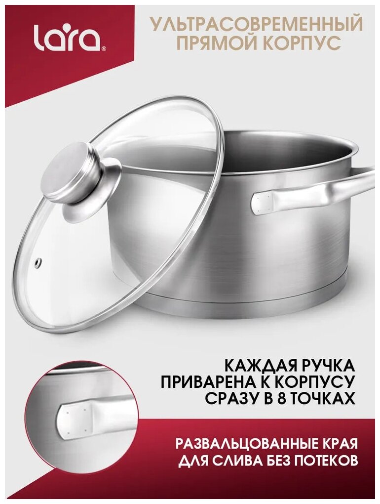 Купить Набор посуды Lara Dynasty, 1.8 л, 2.5 л, 4.4 л, нержавеющая сталь, матовая полировка, индукционное капсулированное дно, подходит для всех видов плит