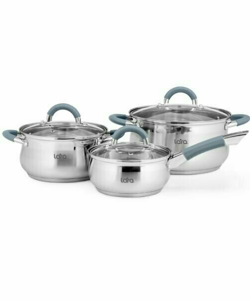 Набор посуды LARA Bell, 1,6 л, 2,6 л, 4,7 л, нержавеющая сталь, для всех видов плит, 3 предмета