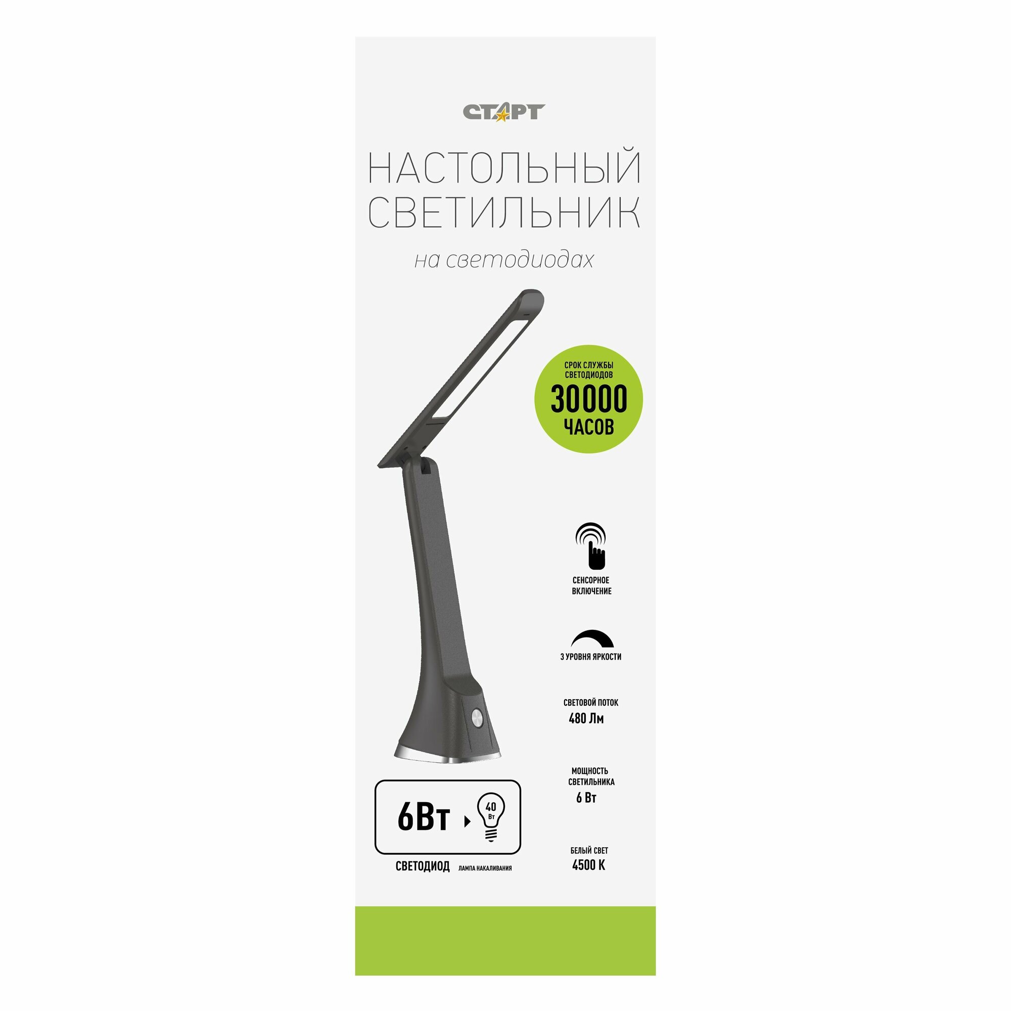 СохранитьНастольный светильник старт СТ212, LED 6 Вт, 350Лм (сенсорный выключатель, с диммером) интересное: