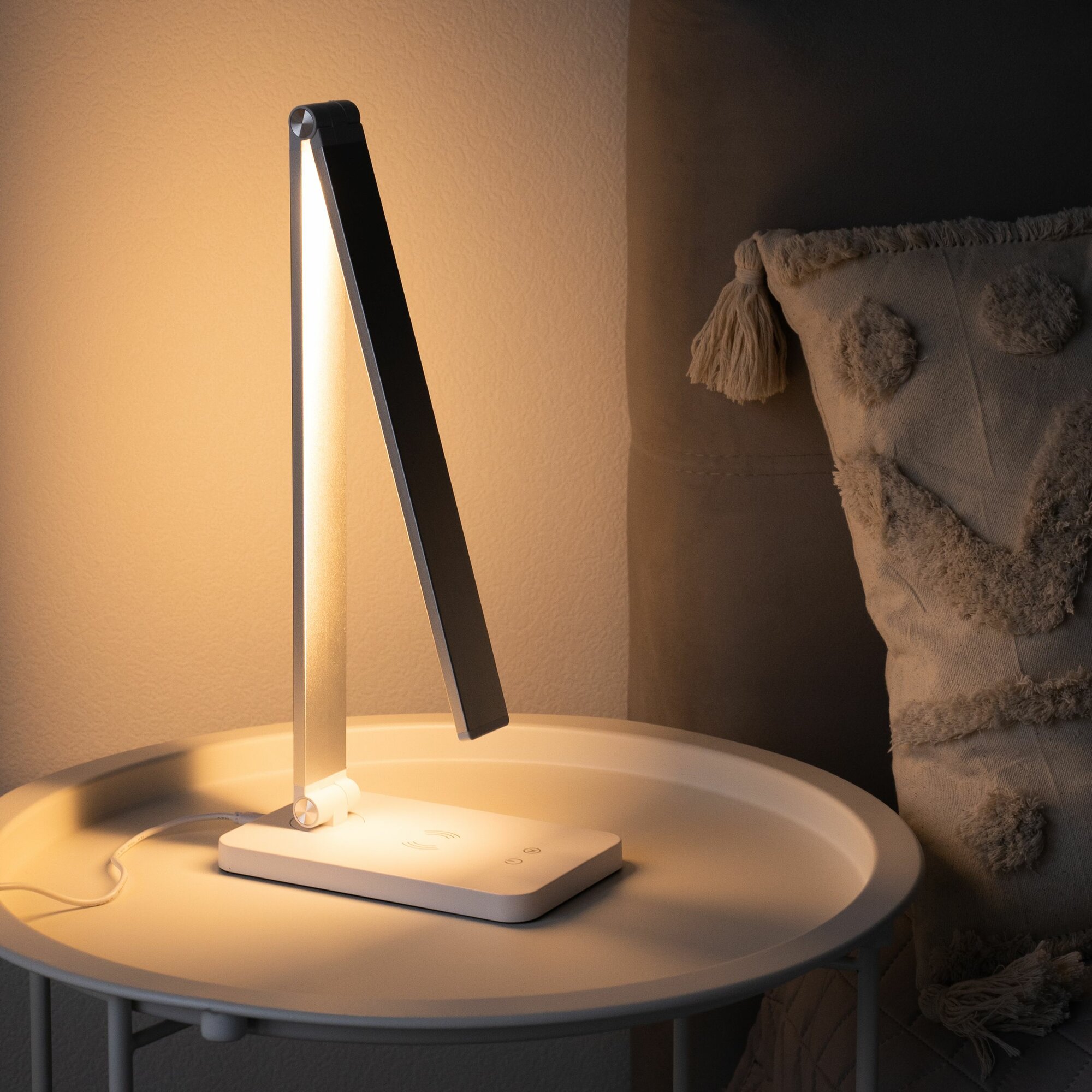 | Плюсы: | Удобная лампа, есть беспроводная зарядка для телефона, несколько режимов освещения (от теплого к холодному), можно использовать как ночник |