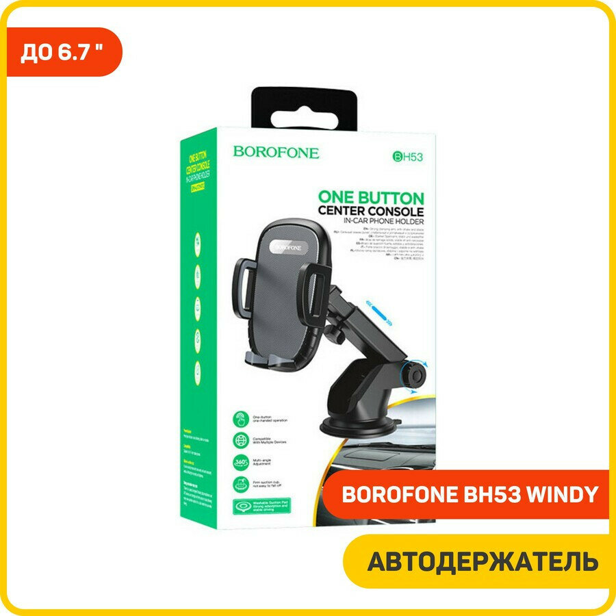 Автомобильный держатель BOROFONE BH53 Windy, зажимной, на приборная панель/лобовое стекло, черный+серый