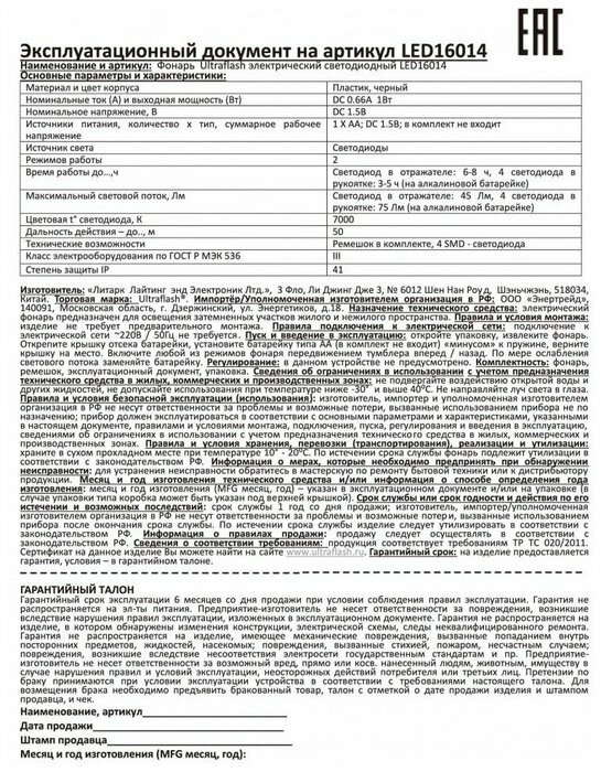 Фонарь LED16014 1 + 4SMD LED 2 реж. 1XR6 пласт блист-пакет Ultraflash 14253 интересное: