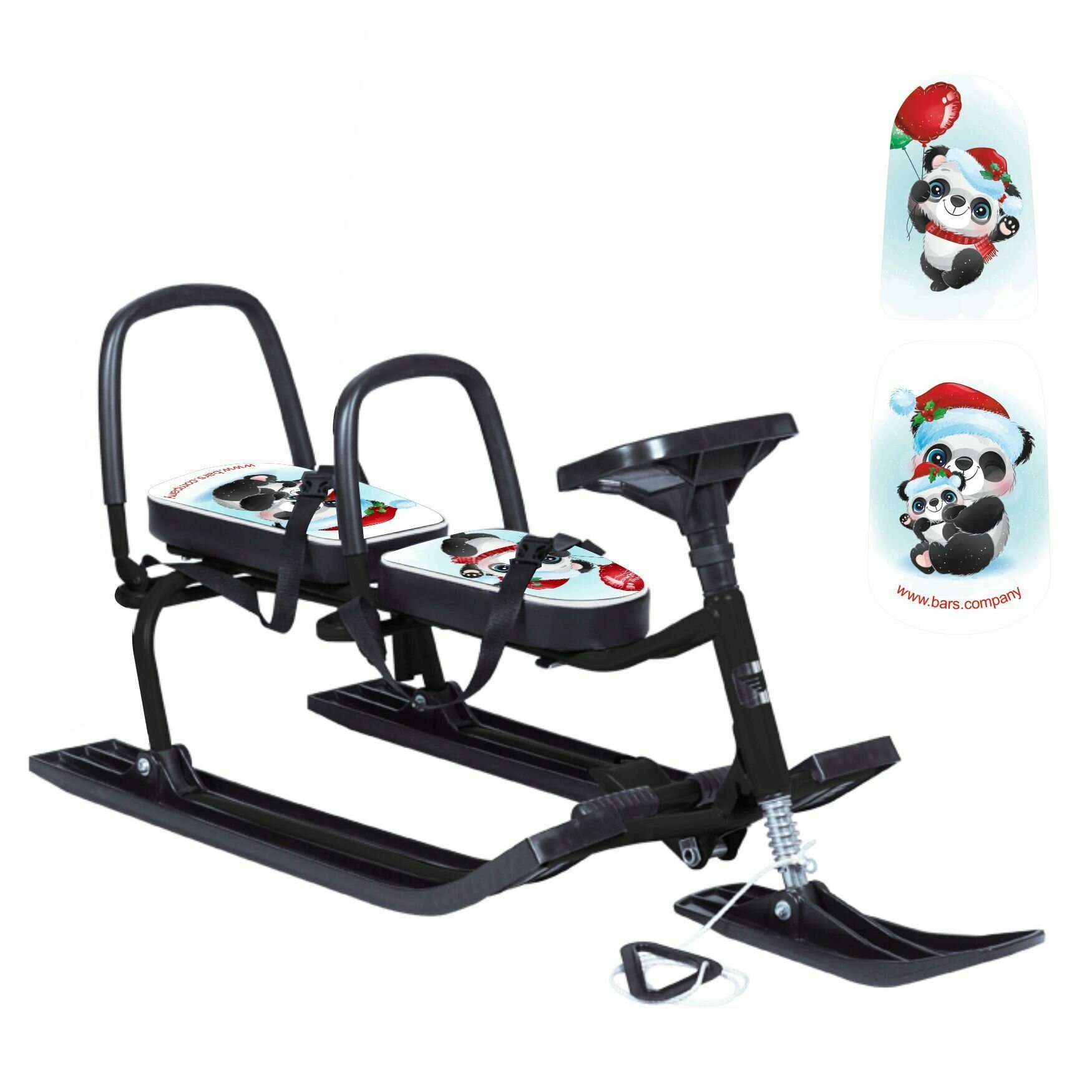 Снегокат Барс "Twins baby" для двоих с двумя складными спинками, Панды маскарад (503)