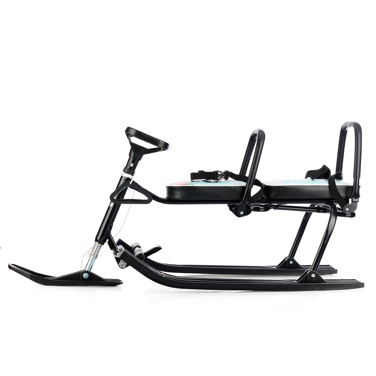 Снегокат 503 TWINS BABY разборный для двоих, с двумя складными спинками, чёрный