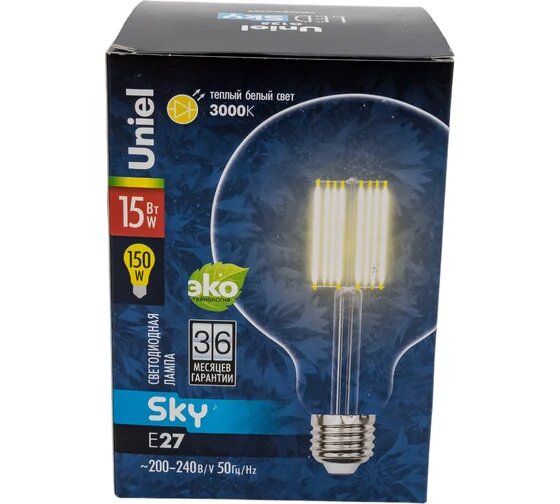 Ниже Вы можете прочитать отзывы на Лампа светодиодная филаментная (UL-00004860) Uniel E27 15W 3000K прозрачная LED-G125-15W/3000K/E27/CL PLS02WH, ознакомится с подробными характеристиками, посмотреть интересные обзоры и фотографии на Лампа светодиодная филаментная (UL-00004860) Uniel E27 15W 3000K прозрачная LED-G125-15W/3000K/E27/CL PLS02WH.