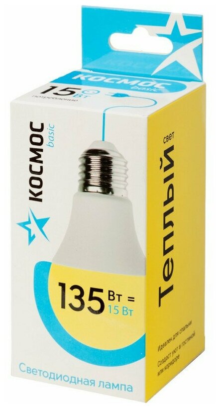 Лампа светодиодная Космос Экономик 15W Е27 3000k тепл.бел. ст.колба, 2 шт интересное: