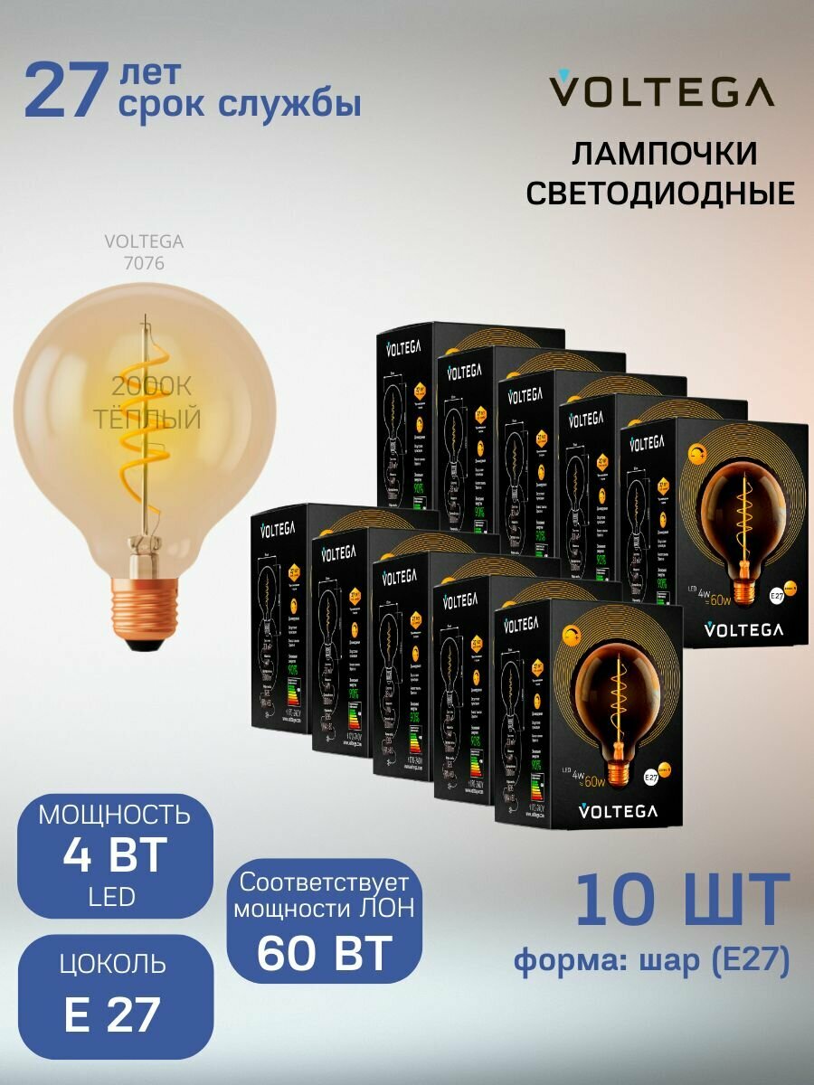 Лампа светодиодная Voltega 7076, E27, G95, 4 Вт, 2000 К