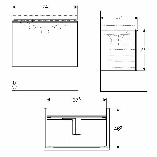 Тумба мебельная без раковины Geberit Acanto 74x53,5х47,6 см 500.611.01.2