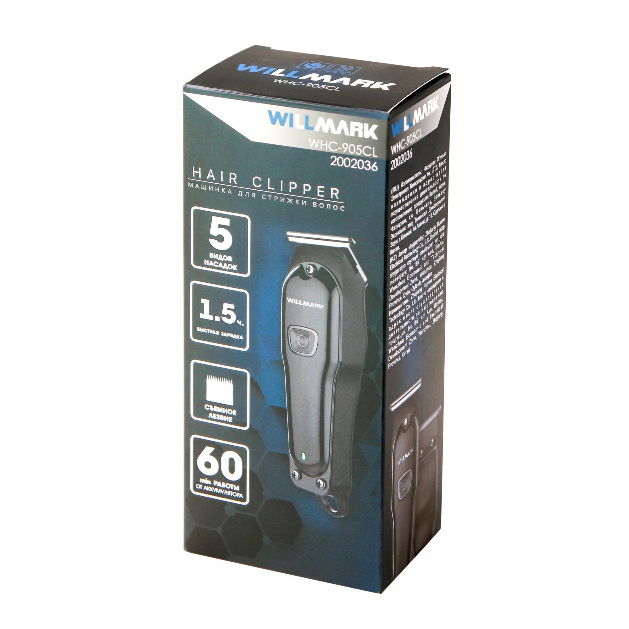 Машинка для стрижки WILLMARK WHC-905CL (аккумуляторная,5 насадок,60мин. работы, зарядка 1,5ч, нерж. ст)