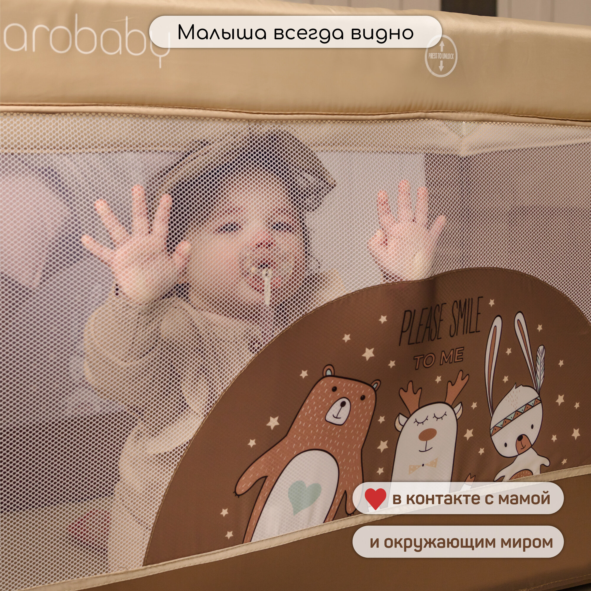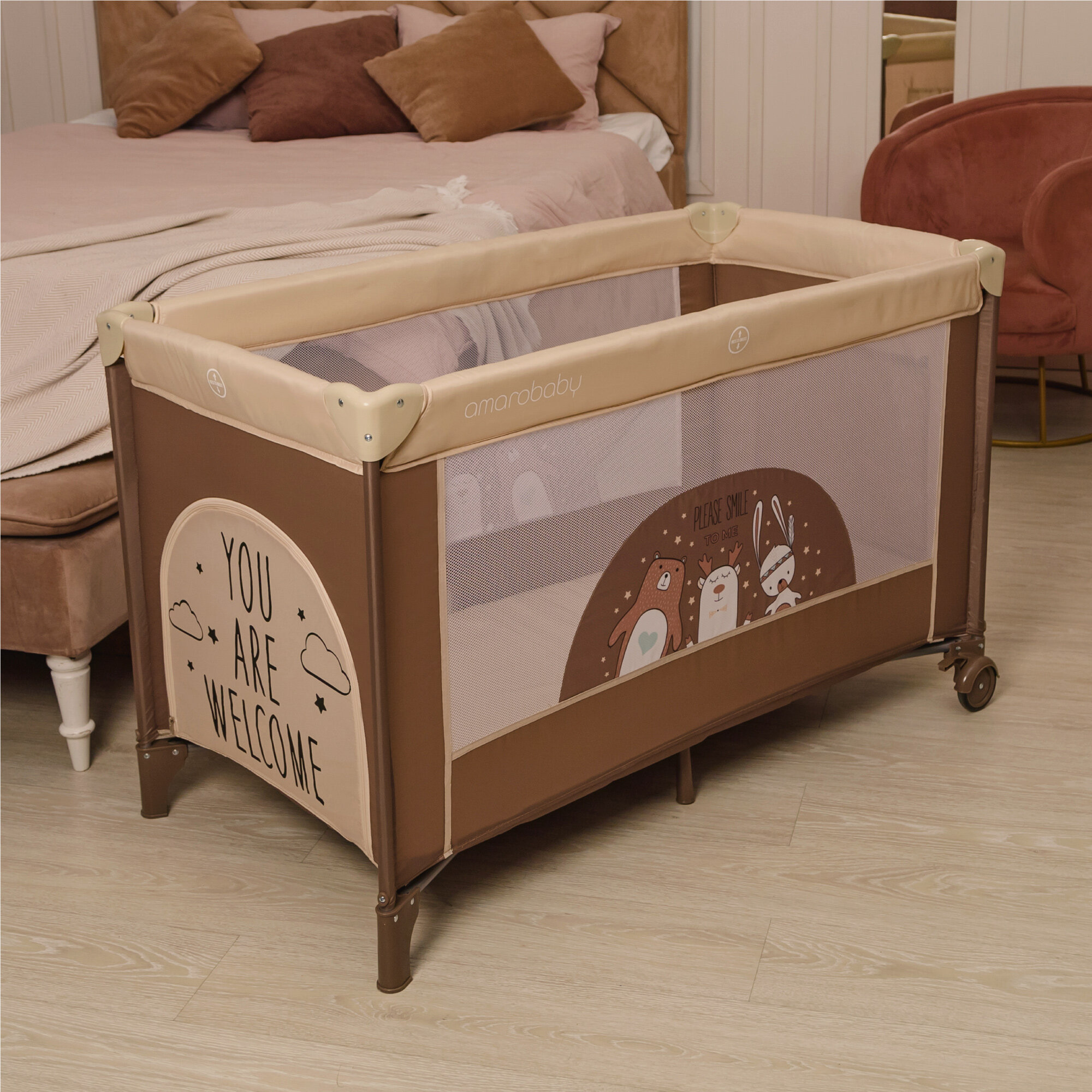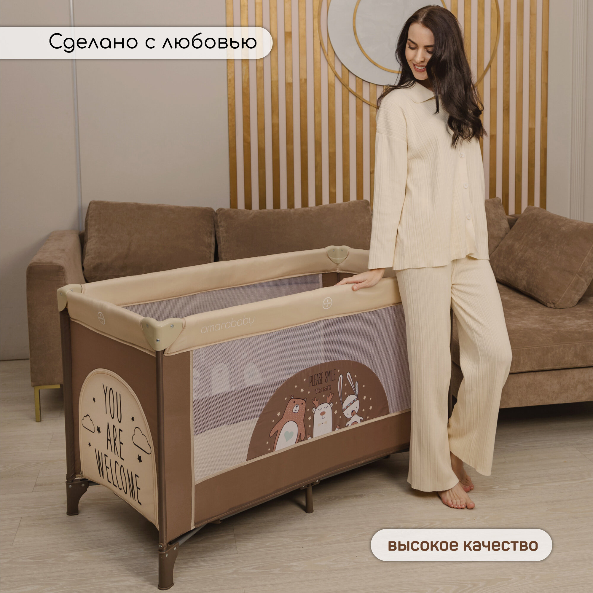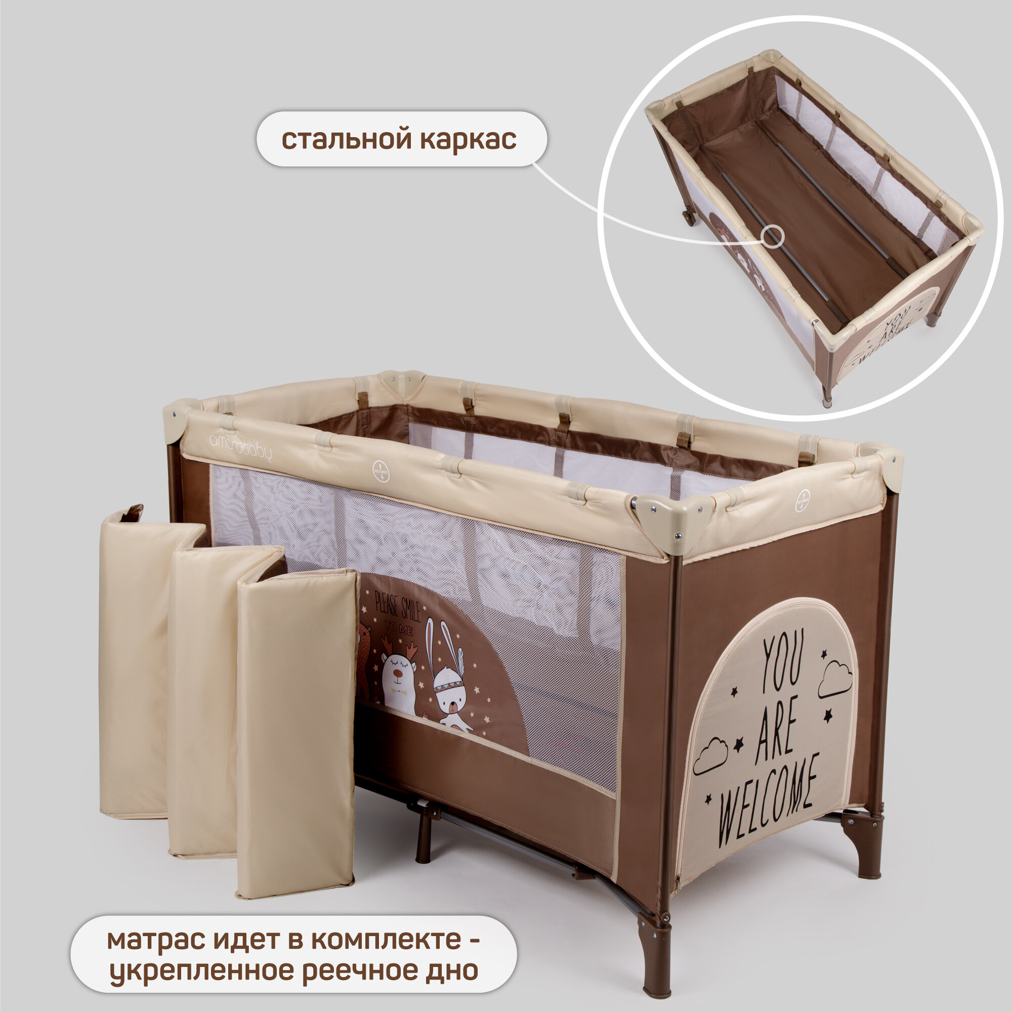 Манеж-кровать Amarobaby MULTIFORM (Smile Friends) прямоугольный, бежевый интересное: