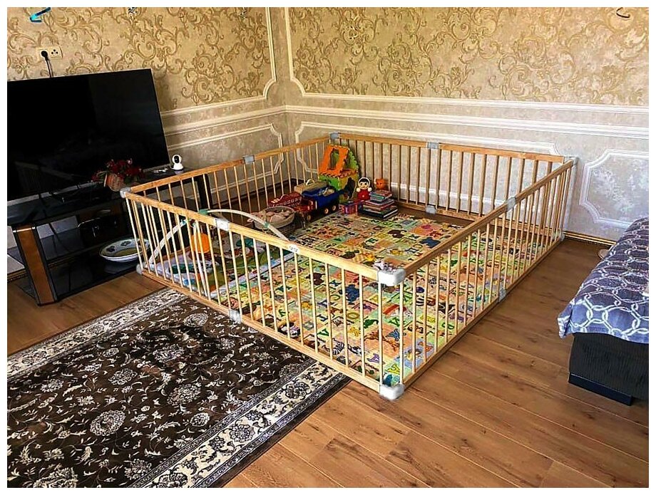 Большой деревянным манеж LYALYALUX SL139-W, 8 секций 2,2х2,2м, калитка интересное: