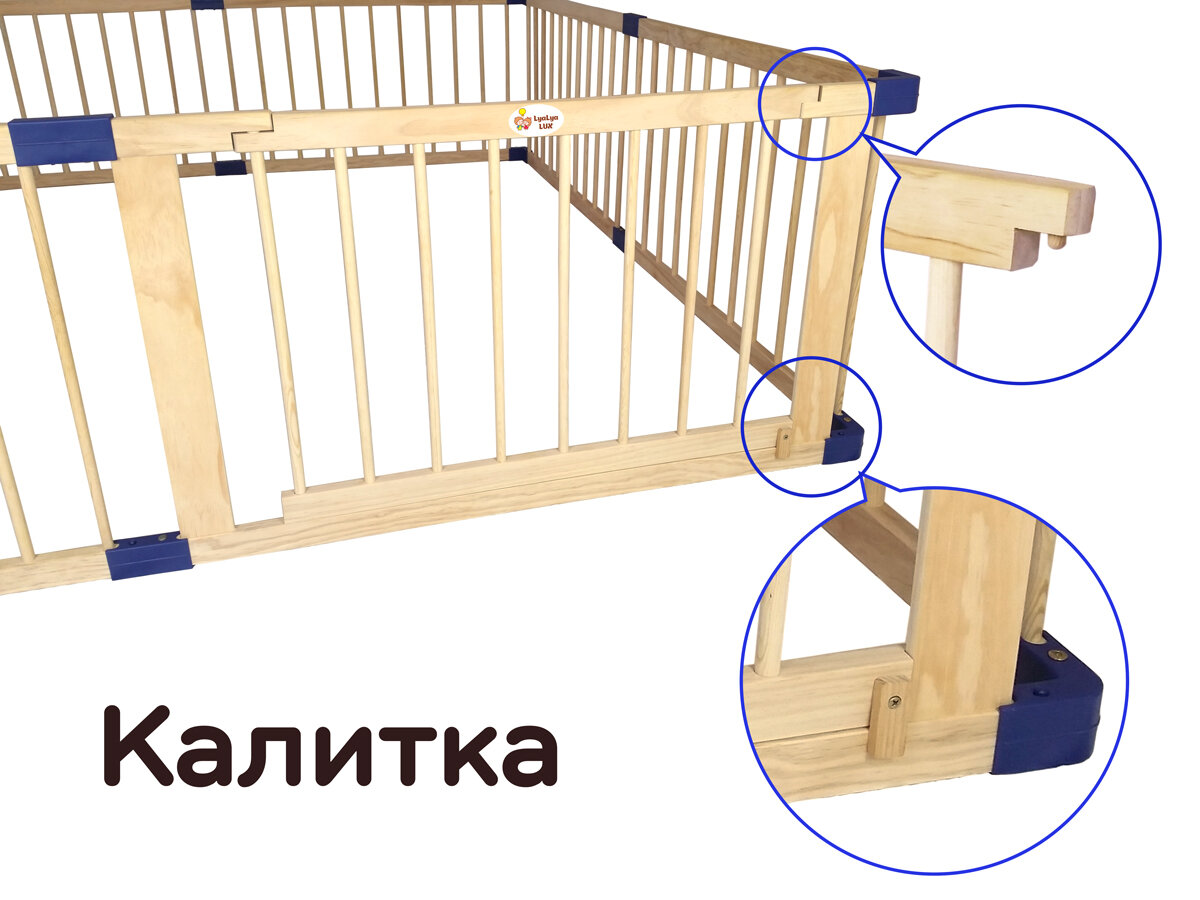 Деревянным манеж LYALYALUX SL139XPE40GW, калитка 2.22x2.22м, 8 секций, коврики серые-белые интересное: