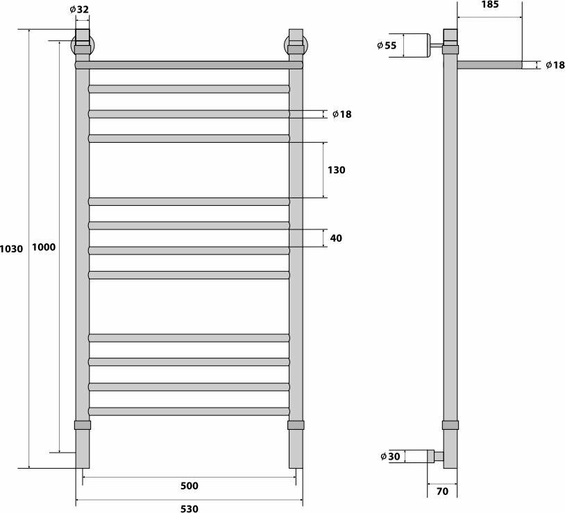 Водяной полотенцесушитель Energy Ideal 800x500