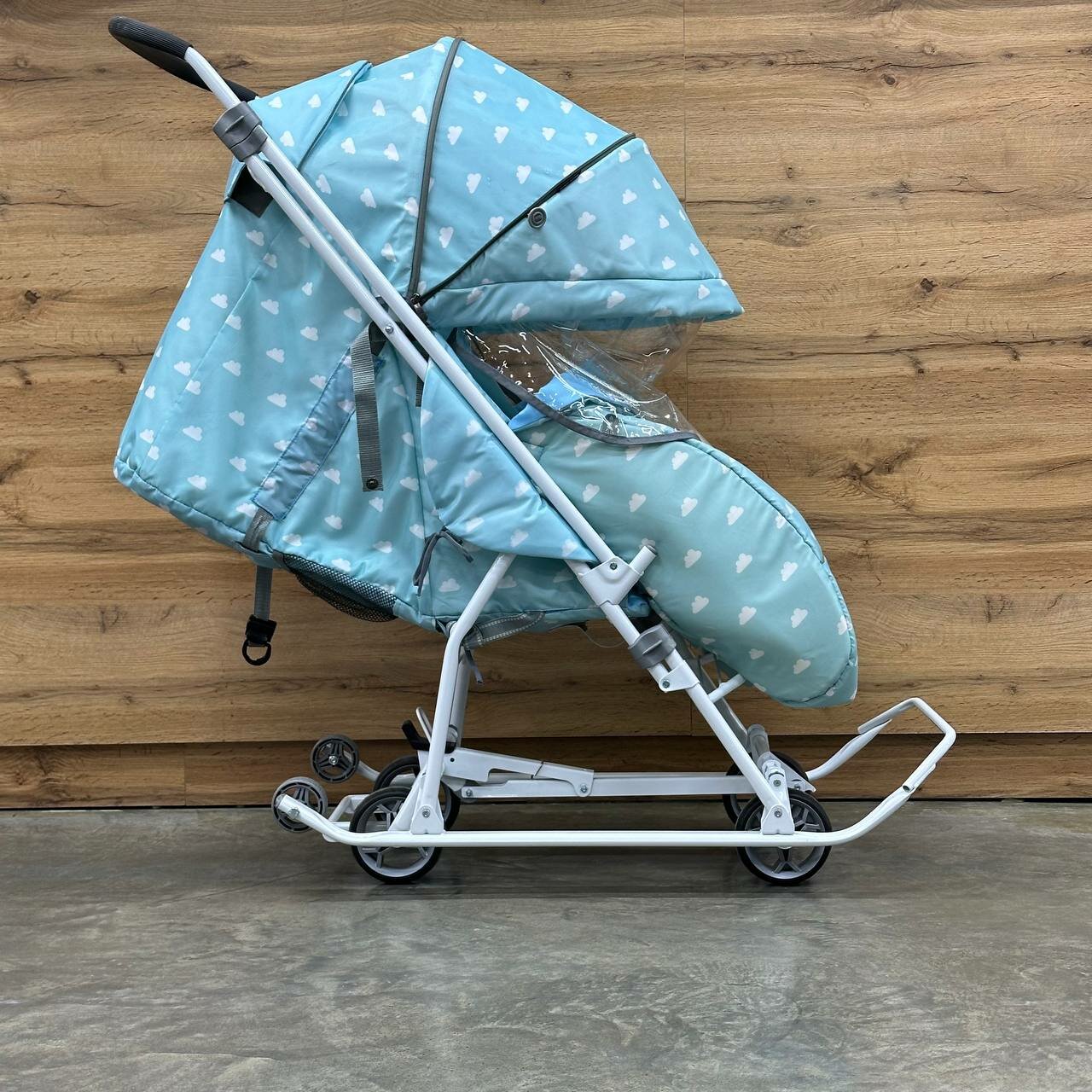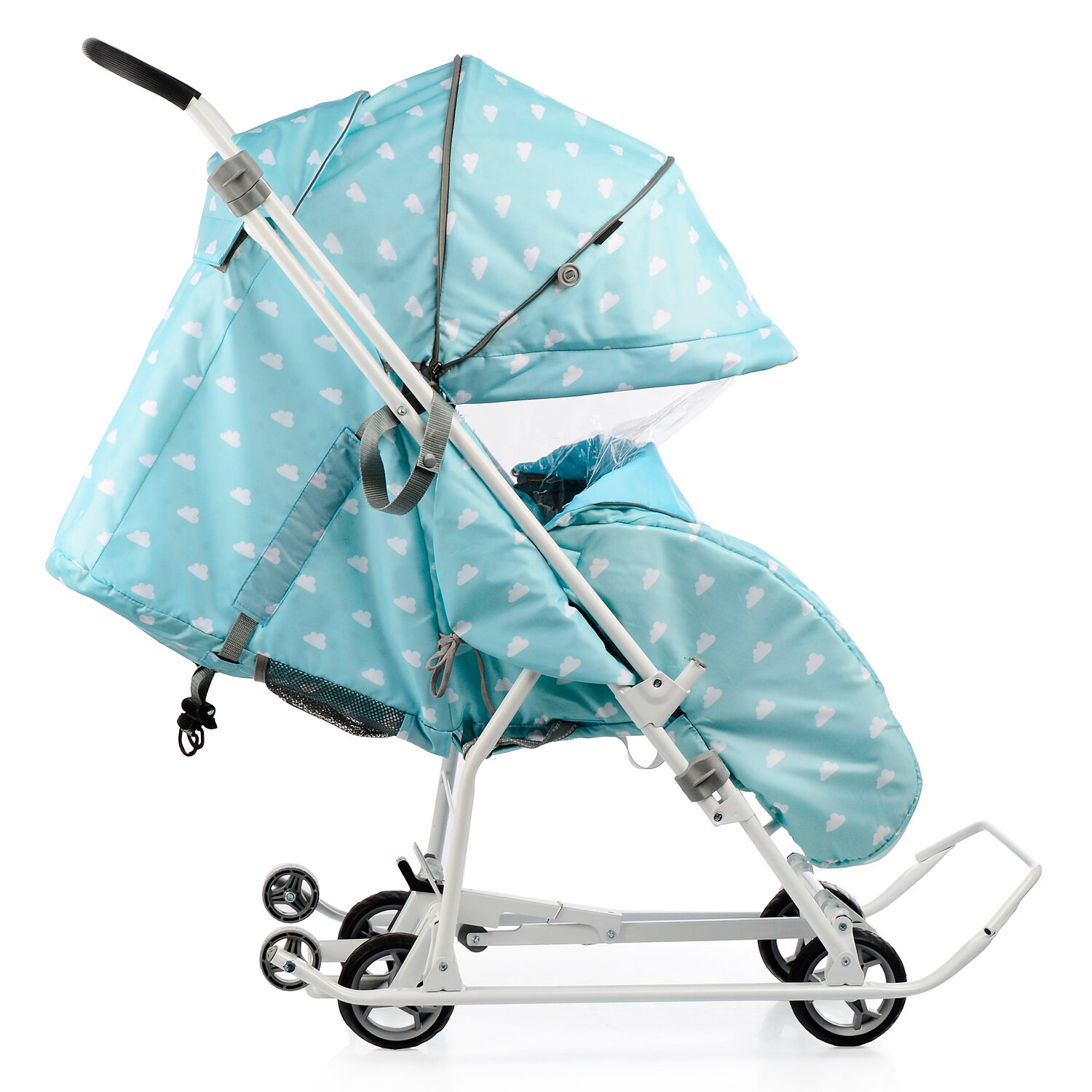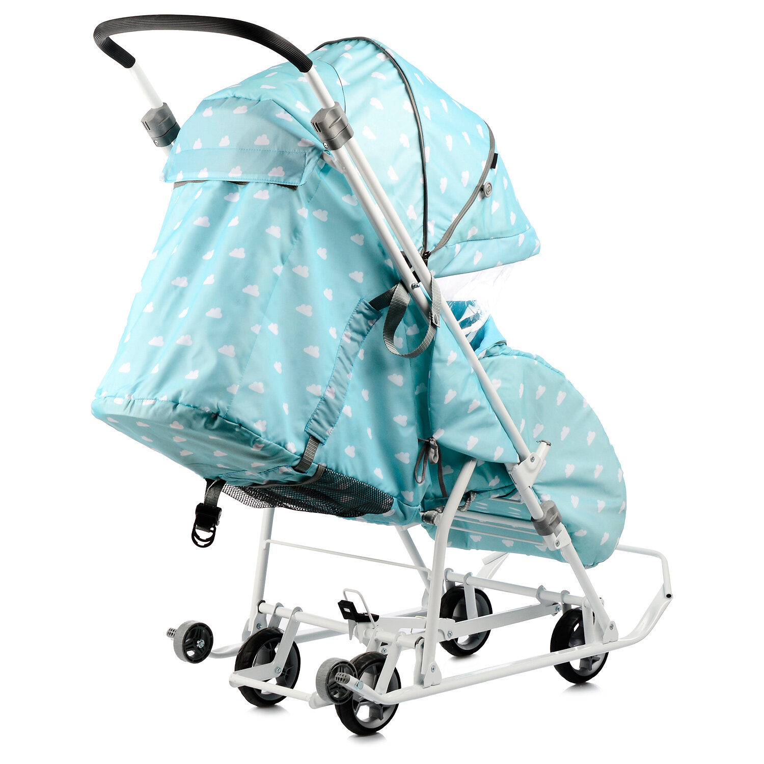 Санки-коляска «Наши детки 3-1К», принт с облачками, цвет голубой