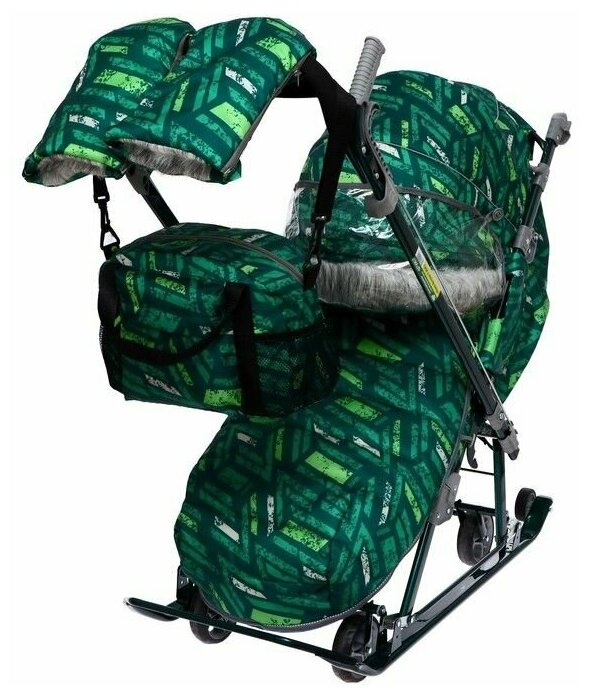 | Особенности | перекидная ручка / подножка / ремни безопасности / складные / со спинкой / Дождевик / Колеса / Муфта для рук / Светоотражающая ткань / Сумка |