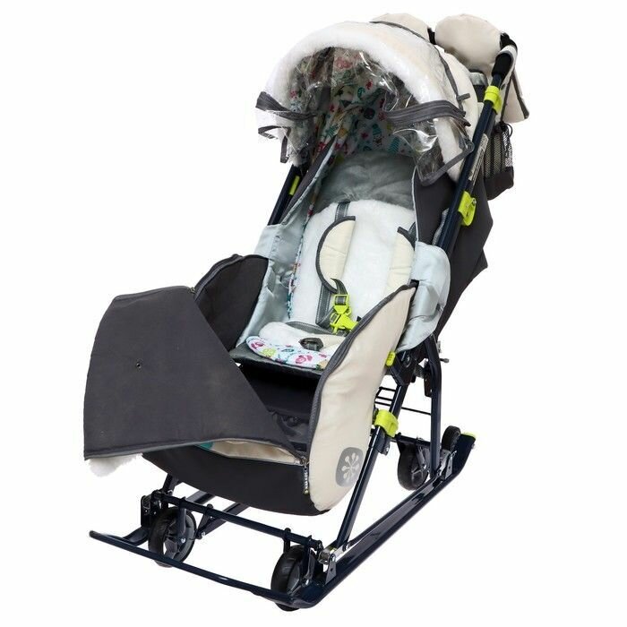 Санки-коляска Nika Ника-детям 7-6 НД7-6, с енотом зеленый/серый