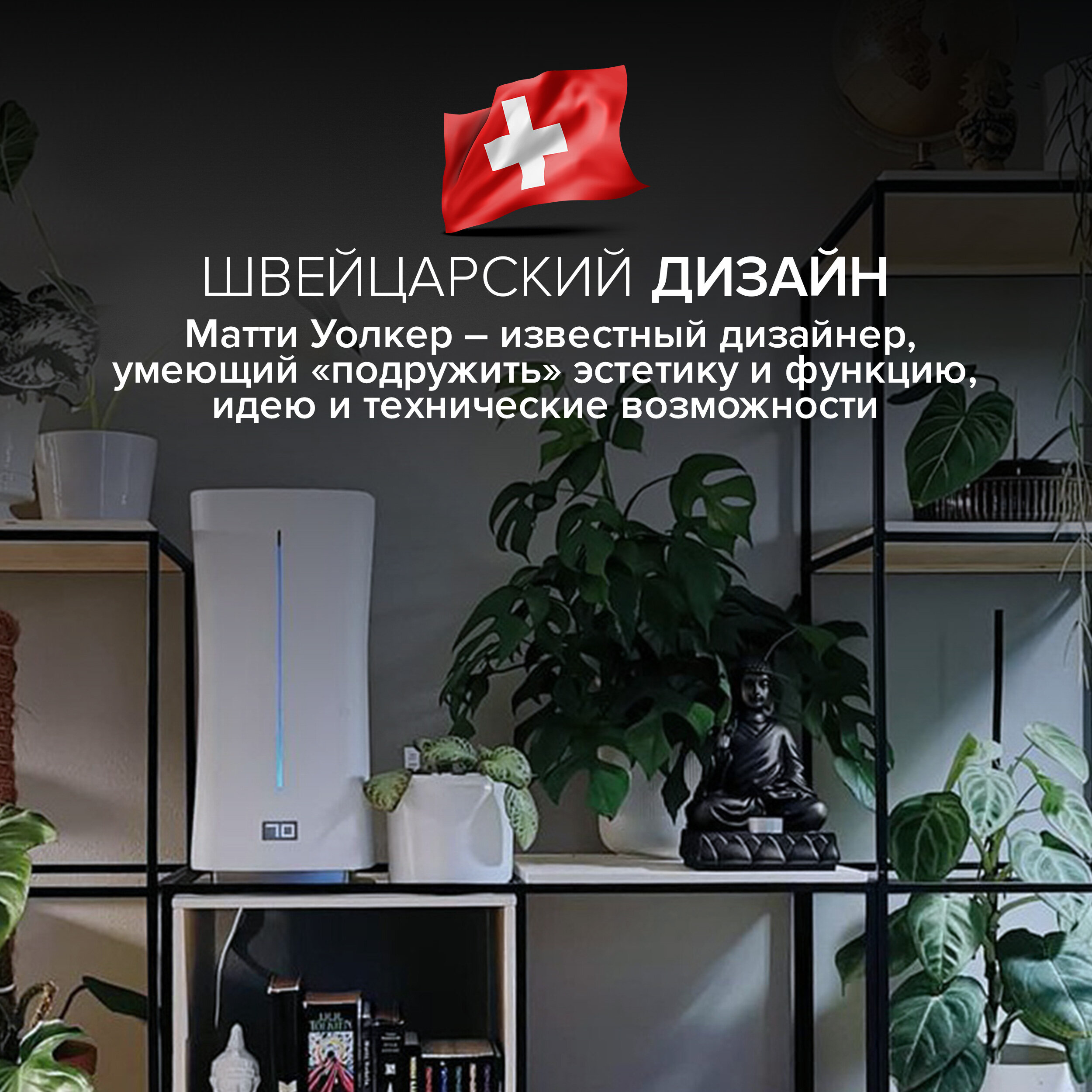 | Подробная комплектация | увлажнитель воздуха Eva Wi-Fi Original, бактерицидный фильтр Water Cube™ – 2 шт, картридж против накипи Anticalc – 1 шт, эфирное масло Relax – 1 шт, гигрометр Selina little – 1 шт |