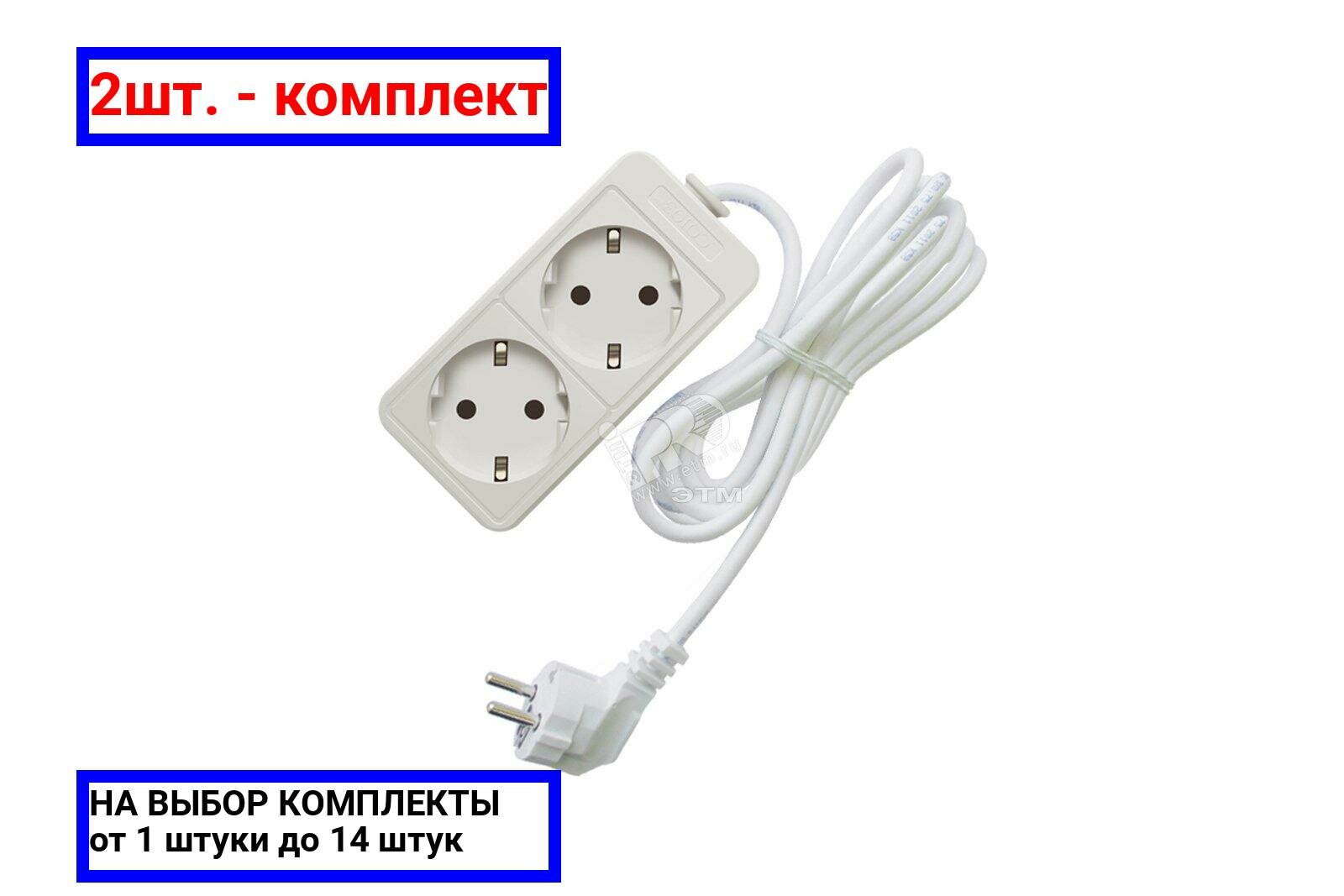 Удлинитель Союз 481S-6203, 2 розетки, с/з, 16А / 3500 Вт белый 3 м 2