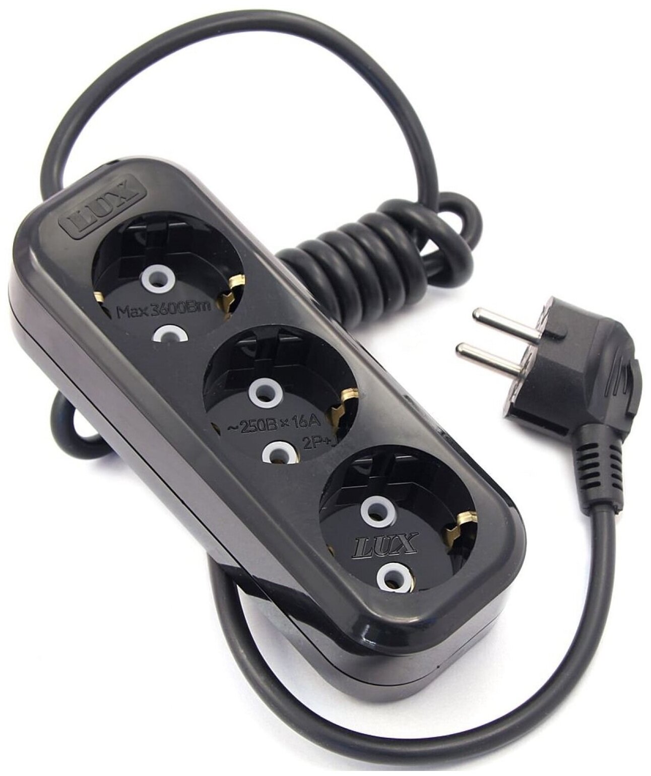 Удлинитель сетевой Lux Premium 3X, 3м, черный, 16А, 3500Вт, с заземлением и защитой от короткого замыкания