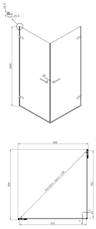 Душевой уголок Black&White Stellar Wind S101 800х800