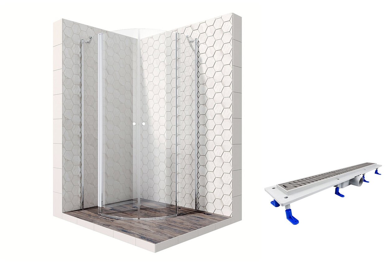 Купить Комплект полукруглого душевого ограждения с линейным трапом Ambassador Nord 13011101-ST11, с EasyClean, 90 х 90 см