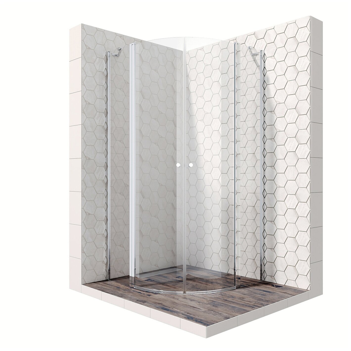 Душевой уголок 90х90 с трапом и распашными дверями Ambassador Nord 13011101-ST2: душевое ограждение из стекла 6 мм, профиль хром
