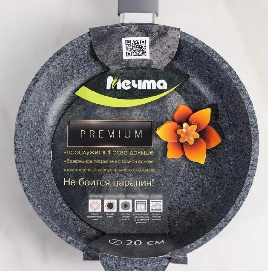 Сковорода Мечта Посуда мечта "Premium" (grey) несъемная ручка, 20 см интересное: