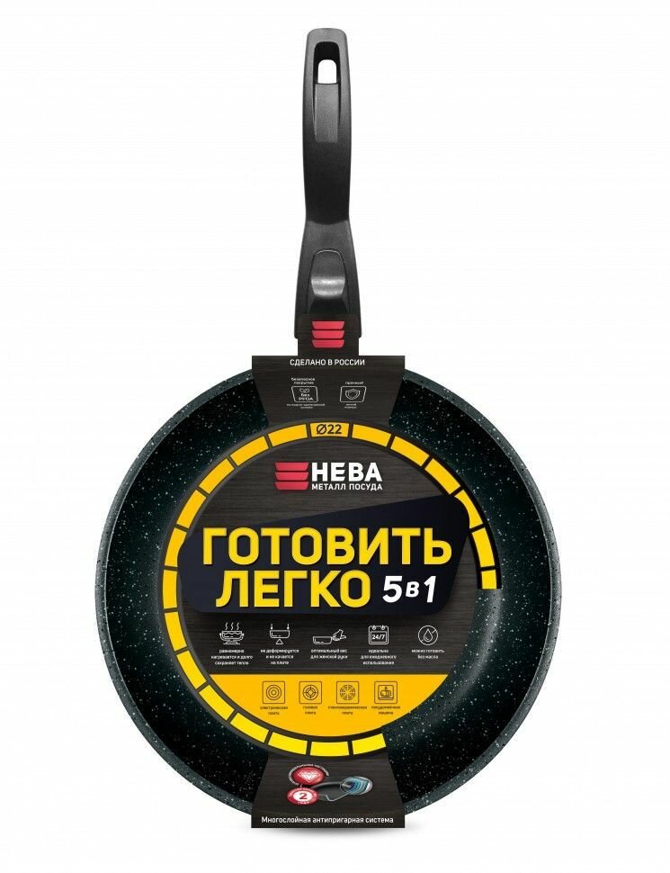 Сковорода НЕВА МЕТАЛЛ ПОСУДА Готовить легко, диаметр 22 см