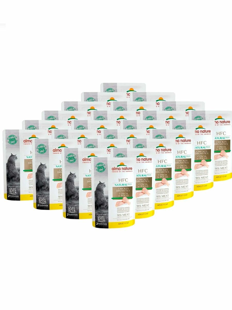 Almo Nature Паучи для Кошек "Куриные бедрышки" 90% мяса (HFC Natural Plus - Chicken drumstick) 0,055 кг х 24 шт.
