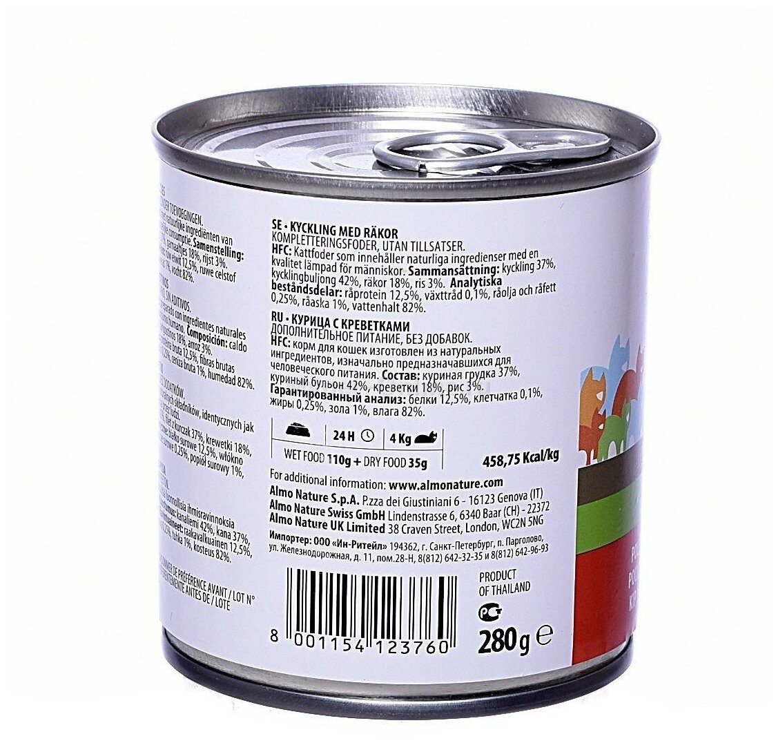 Купить Almo Nature Консервы для Кошек с Курицей и Креветками (HFC - Natural - Chicken and Shrimps) 5152, 0,280 кг