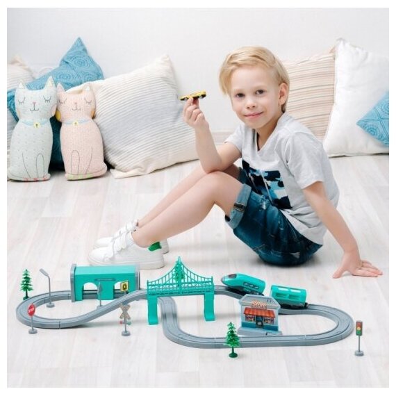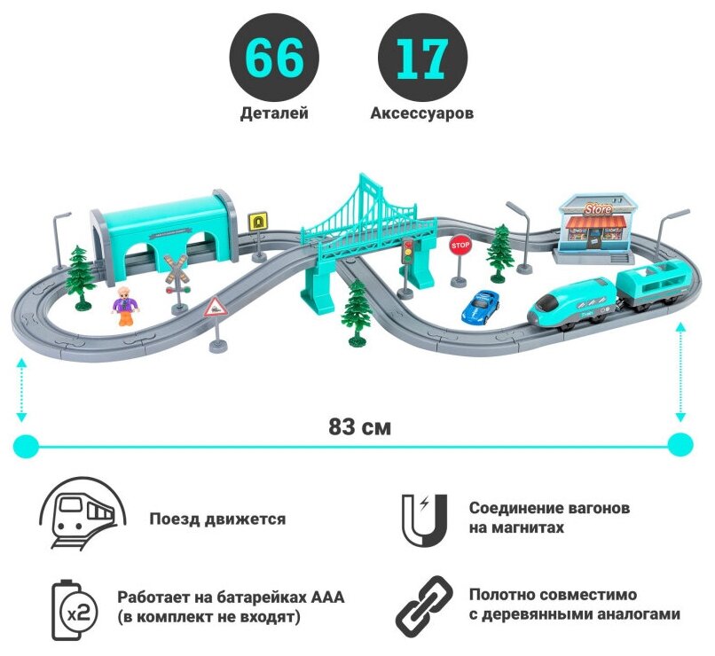 Железная дорога для детей "Мой город, 66 предметов", на батарейках