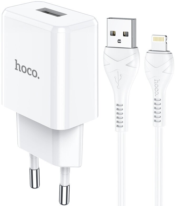 Hoco Сетевое зарядное устройство Hoco N9, USB - 2.1 А, кабель Lightning 1 м, белый