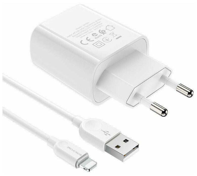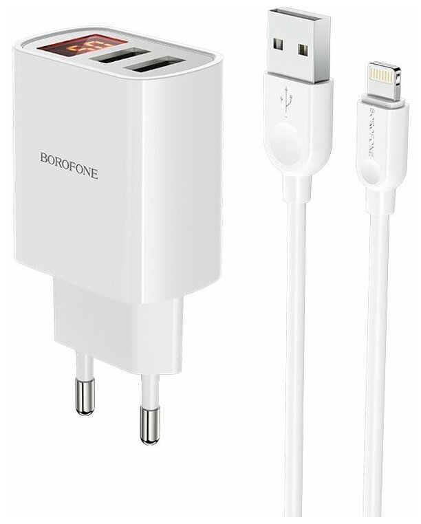 Купить Сетевое зарядное устройство Borofone BA58A 2xUSB 2.4A + кабель Lightning
