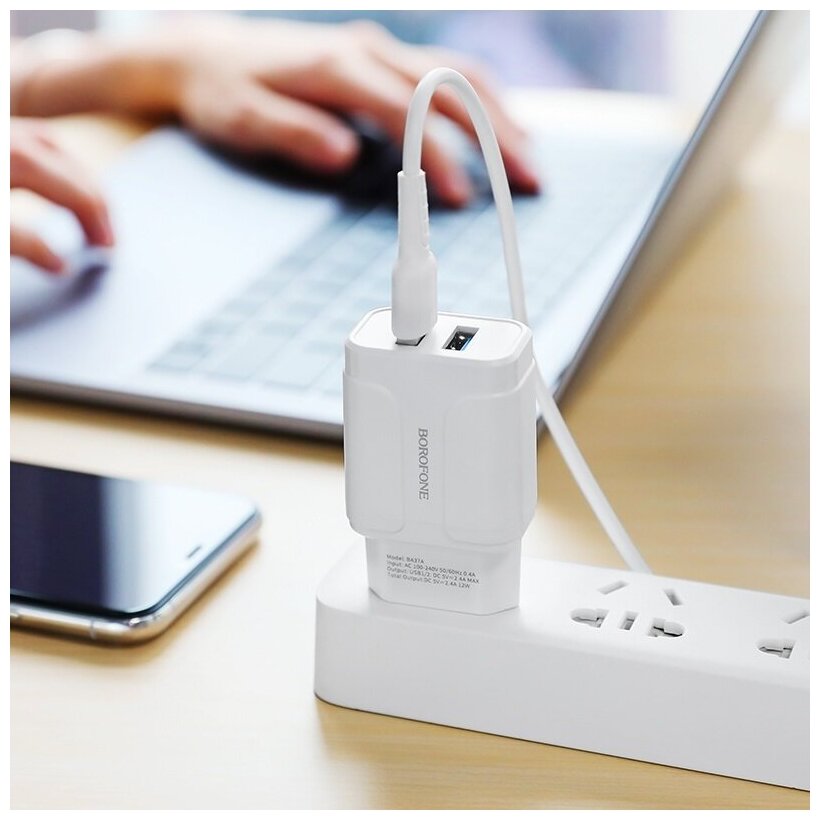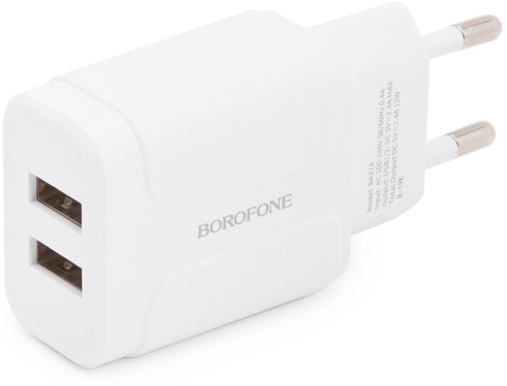 Сетевое зарядное устройство (СЗУ) Borofone BA37A (2 USB) + кабель Lightning, 2.4 А, белый