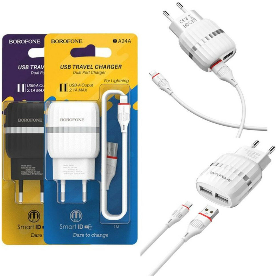 Купить Сетевое зарядное устройство 2xUSB с кабелем Lightning Borofone BA24A Vigour - Белое
