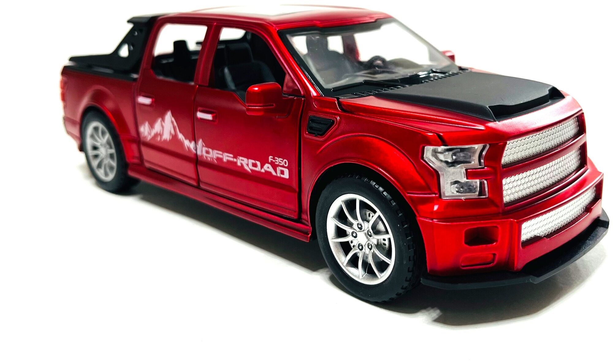 Металлическая машинка пикап Форд Ф-350 (красный), Ford F-350 off-road, 22см - масштаб 1:24, коллекционная модель, инерционная машинка интересное: