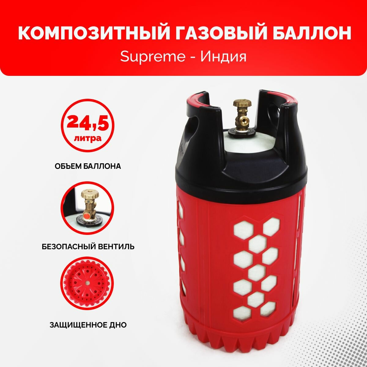 Баллон полимерно-композитный газовый, красный, 18 л (LPG/СУГ) RSV COMPOSITE RSV18RED
