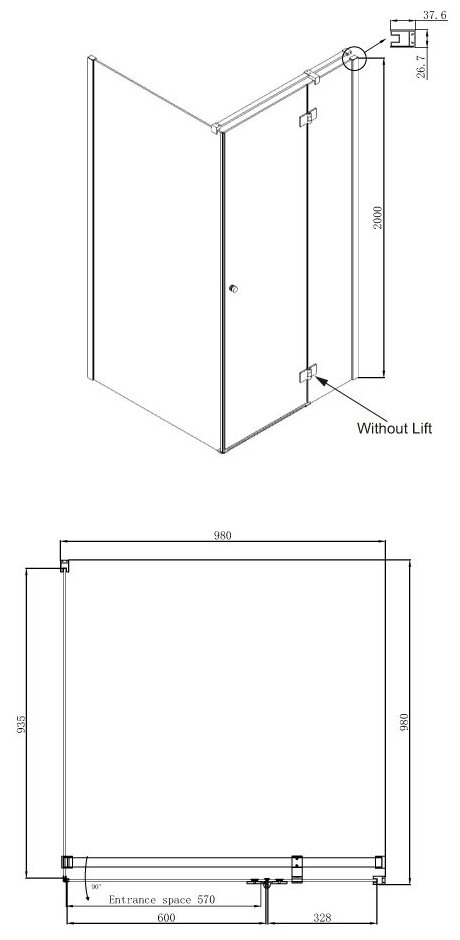 Душевой уголок Black&White Stellar Wind S101 800х800