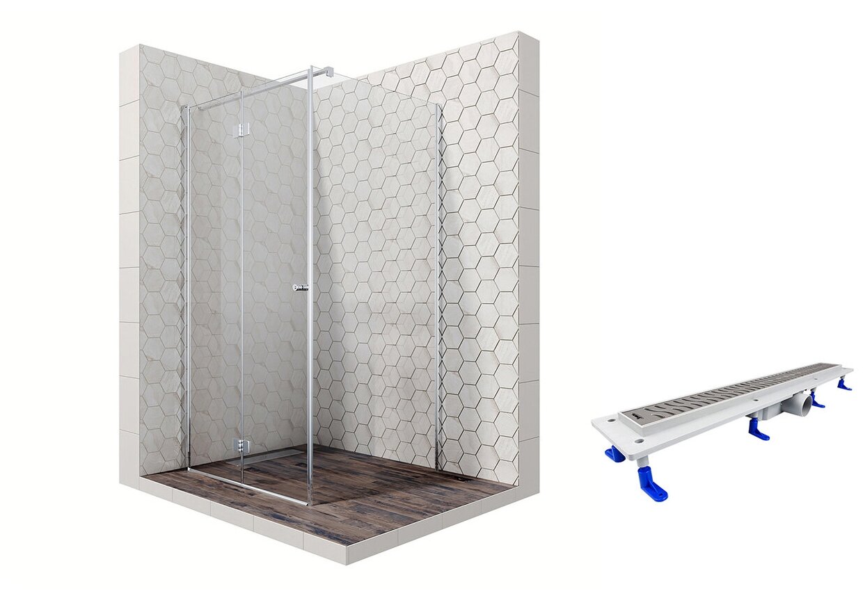 Купить Комплект квадратного душевого ограждения с линейным трапом Ambassador Diamond 12011105L-ST3, с EasyClean, 90 х 90 см