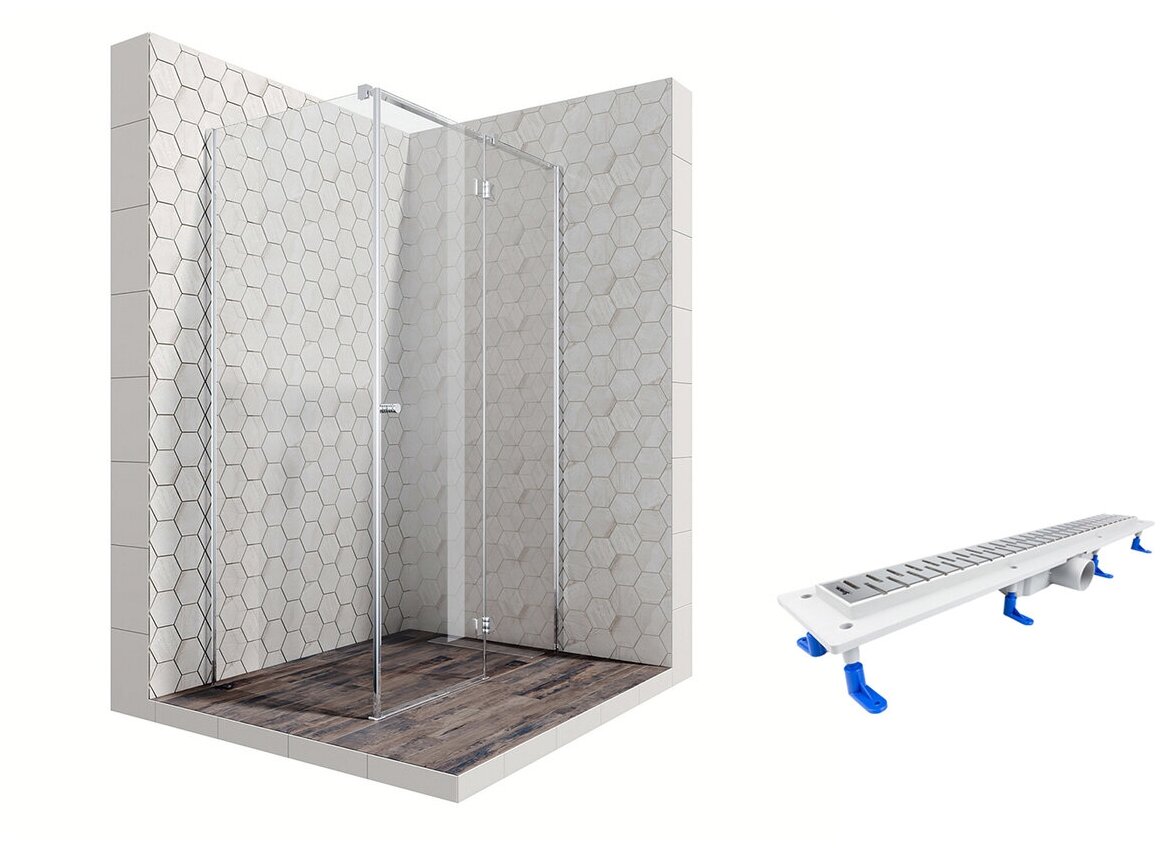 Купить Комплект прямоугольного душевого ограждения с линейным трапом Ambassador Diamond 12011104R-ST2, с EasyClean, 120 х 80 см
