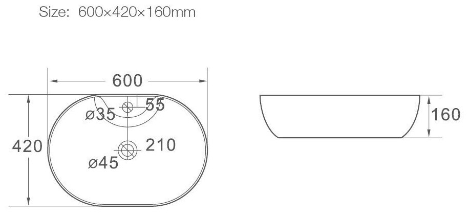 Раковина накладная SantiLine SL-1023 60х42 см белая