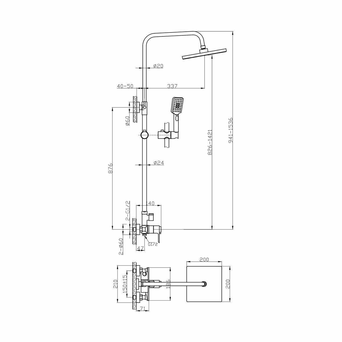 Душевая система Rossinka RS50-45 с регулируемой высотой штанги