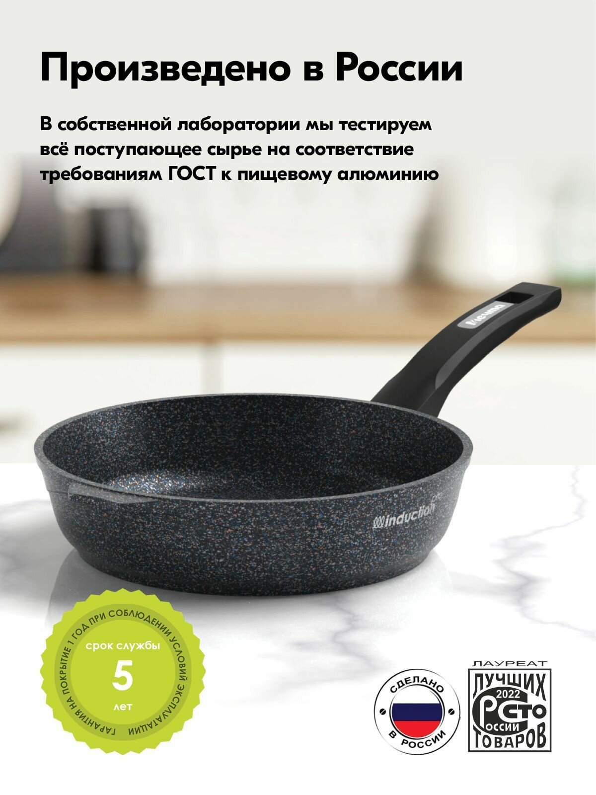 Сковорода индукционная мечта 24см с ручкой, антипригарное покрытие Гранит black Induction Pro , черная