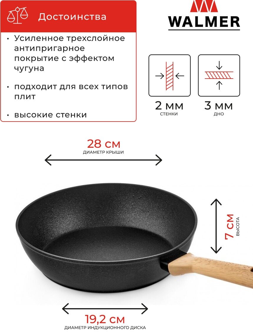 Сковорода глубокая WALMER YORK 28 см индукция (W34204828i) интересное: